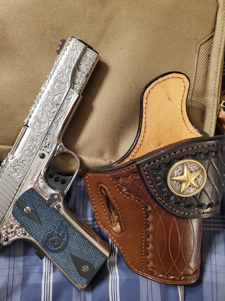 A Texas BBQ rig/gun is a high-quality, often customized, and ornate handgun—typically a revolver or 1911—worn openly at social events like BBQs, weddings, or community gatherings in Texas and the South. It represents a “Sunday best” firearm, featuring engravings, premium grips (ivory/pearl/exotic wood), and is worn with a high-quality leather holster.